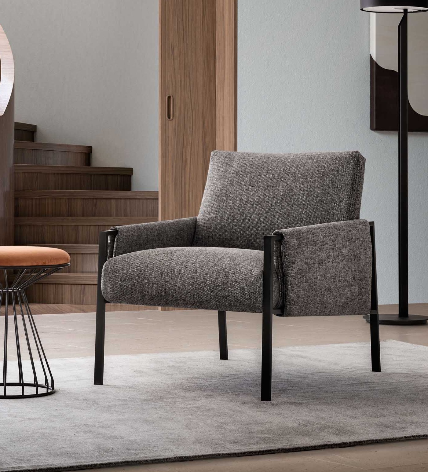 Fotoliul Andy este întruchiparea minimalismului modern. Cadrul metalic cu finisaj elegant și tapițeria gri creează o armonie perfectă între funcționalitate și estetică. Forma ergonomică oferă un confort excepțional, păstrând în același timp un aspect rafinat și stilat.