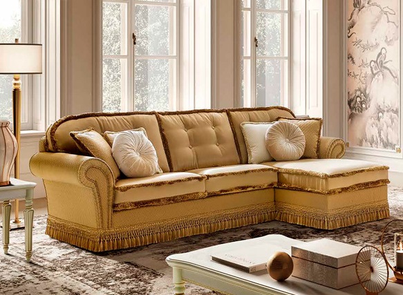 Canapeaua Decor Sofa este expresia rafinamentului clasic italian. Forma sa voluminoasă și moale, finisajul elegant cu franjuri de-a lungul cadrului și nuanța aurie sofisticată creează o atmosferă de lux și eleganță desăvârșită. Lada de depozitare integrată oferă un plus de funcționalitate, fără a compromite armonia designului.