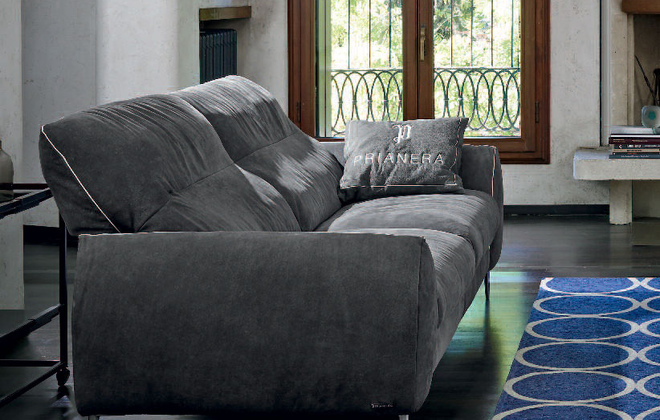 Combinația dintre tapițeria textilă moale și textura Vintage Eco Pelle evidențiază stilul și rafinamentul.
