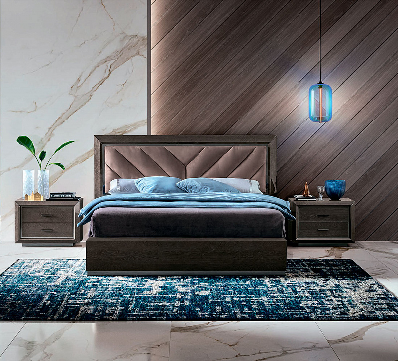 Patul Elite emană eleganță și sofisticare. Combinația dintre suprafața lucioasă Silver Bridge și inserția din piele ecologică Nabuk, cu cusături decorative fine, subliniază stilul rafinat.Modelul include ladă de depozitare, oferind echilibrul perfect între estetică și funcționalitate, iar tonurile maro adaugă profunzime și noblețe dormitorului.