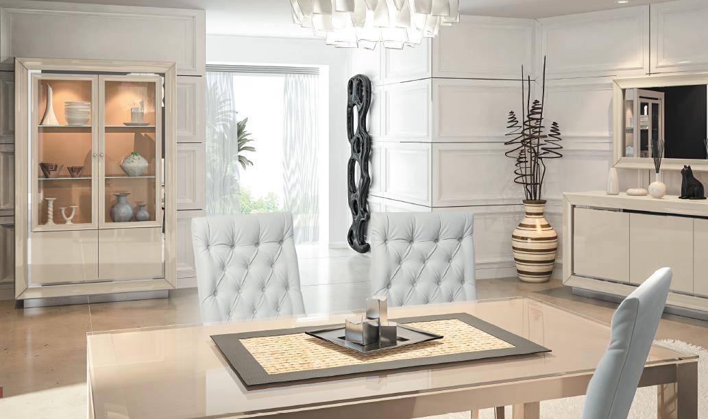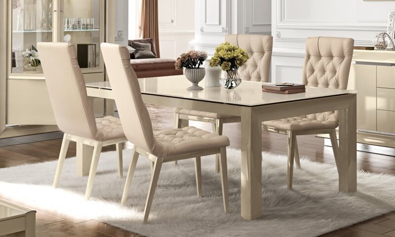 Masă LASTAR DAY. Un joc subtil de materiale și proporții transformă modelul Lastar Day într-o expresie a gustului italian autentic. Blatul extensibil din sticlă securizată oferă senzația de lejeritate și transparență vizuală, în timp ce baza metalică și picioarele din lemn masiv lăcuit subliniază echilibrul perfect între rezistență și frumusețe. Extensiile integrate discret în structură oferă confort și eleganță în momentele petrecute alături de oaspeți.