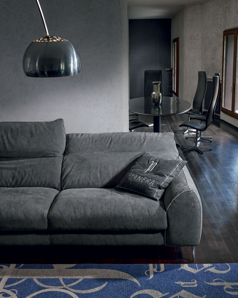Canapeaua Modi întruchipează minimalismul italian și confortul desăvârșit. Cotierele late și moi oferă o plăcere tactilă unică, iar șezutul și spătarul, umplute cu puf de gâscă premium, asigură lejeritate și rafinament absolut. Nuanța elegantă de gri este accentuată de o finisare delicată din piele naturală deschisă, evidențiind măiestria artizanală și atenția la detalii. Mecanismul de reglare al spătarului este lin și silențios, transformând fiecare moment de relaxare într-o experiență completă de lux.