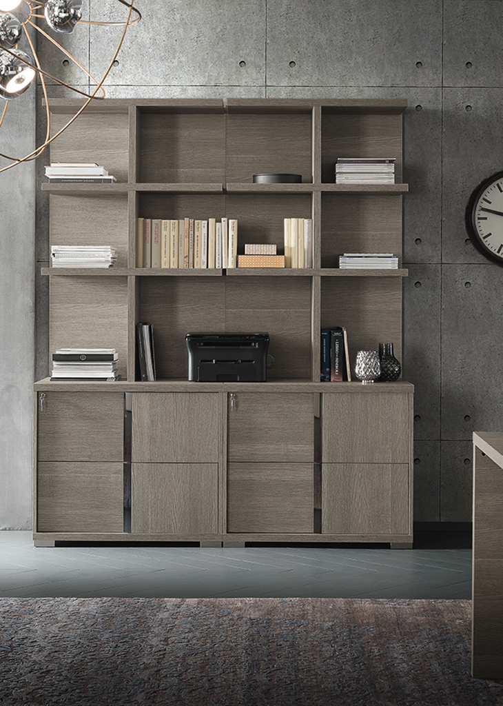 Biroul de acasă Tovoli de la AlfItalia îmbină eleganța designului italian cu funcționalitatea bine gândită. Fiecare detaliu — de la masă până la biblioteci — este realizat cu atenție la proporții, materiale și finisaje, creând o atmosferă de stil și confort. Vă rugăm să rețineți: nu toate modificările corespund complet imaginilor colecției, așa că este recomandat să verificați cu managerii variantele disponibile și să faceți cereri separate pentru dimensiunile mesei și ale bibliotecilor din stoc.
