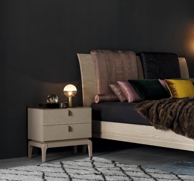 Прикроватная тумба Talento установлена на высоких ножках и имеет корпус из массива дерева, полностью покрытый шпоном. Бронзовые ручки подчёркивают качество и утончённость модели. Talento — функциональное и стильное решение для неоклассического интерьера.