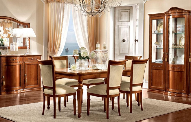 Стол T52 — это утончённая интерпретация неоклассики. Массив дерева, окрашенный в изящный тон, сочетается с декоративными интарсиями с отделкой из сусального серебра, подчеркивая статус и художественную ценность каждой детали.